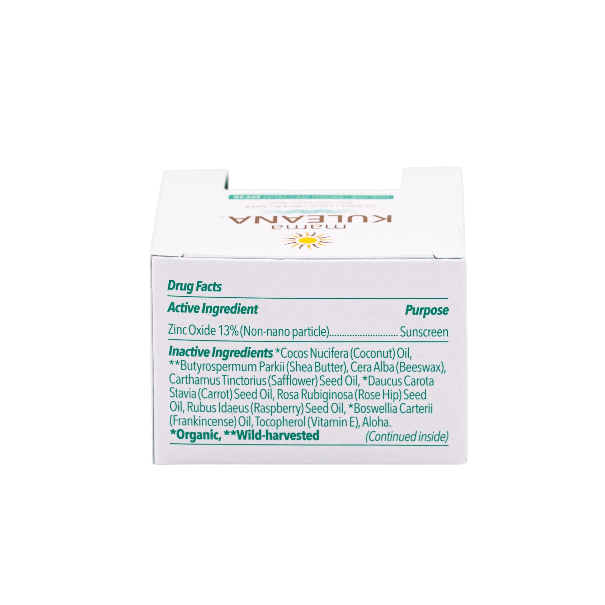 Inactive Ingredients -*Cocos Nucifera (Coconut) Oil, **Butyrospermum Parkii (Shea Butter), Cera Alba (Beeswax), Carthamus Tinctorius (Safflower) Oil, *Daucus Carota Stavia (Carrot) Seed Oil, Rosa Rubiginosa (Rose Hip) Seed Oil, Rubus Idaeus (Raspberry) Seed Oil, *Boswellia Carterii (Frankincense) Oil, Tocopherol (Vitamin E), Aloha*Organic, **Wild-Harvested